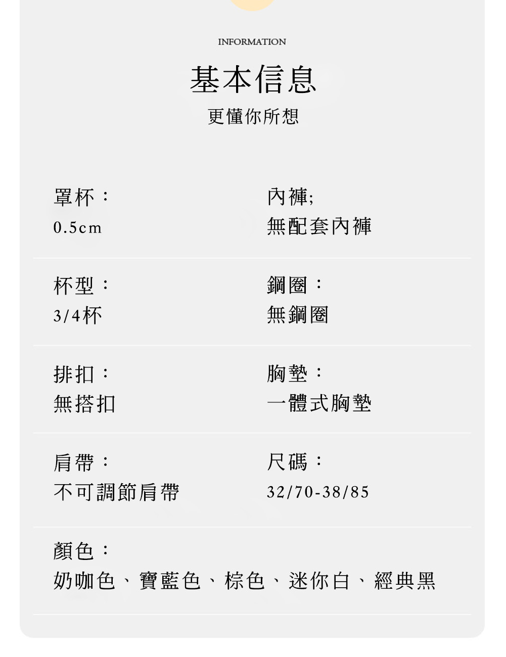 ☆ 罩杯裡料:88.2%聚酯纖維 + 11.8%彈力纖維